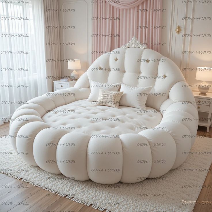 | Внимание | расположение соединительных швов и частей кровати, толщина спинки, шаг каретной стяжки, тип ножек, наличие и вид бантов, страз, пуговиц и другой фурнитуры обсуждается при заказе круглой кровати! |