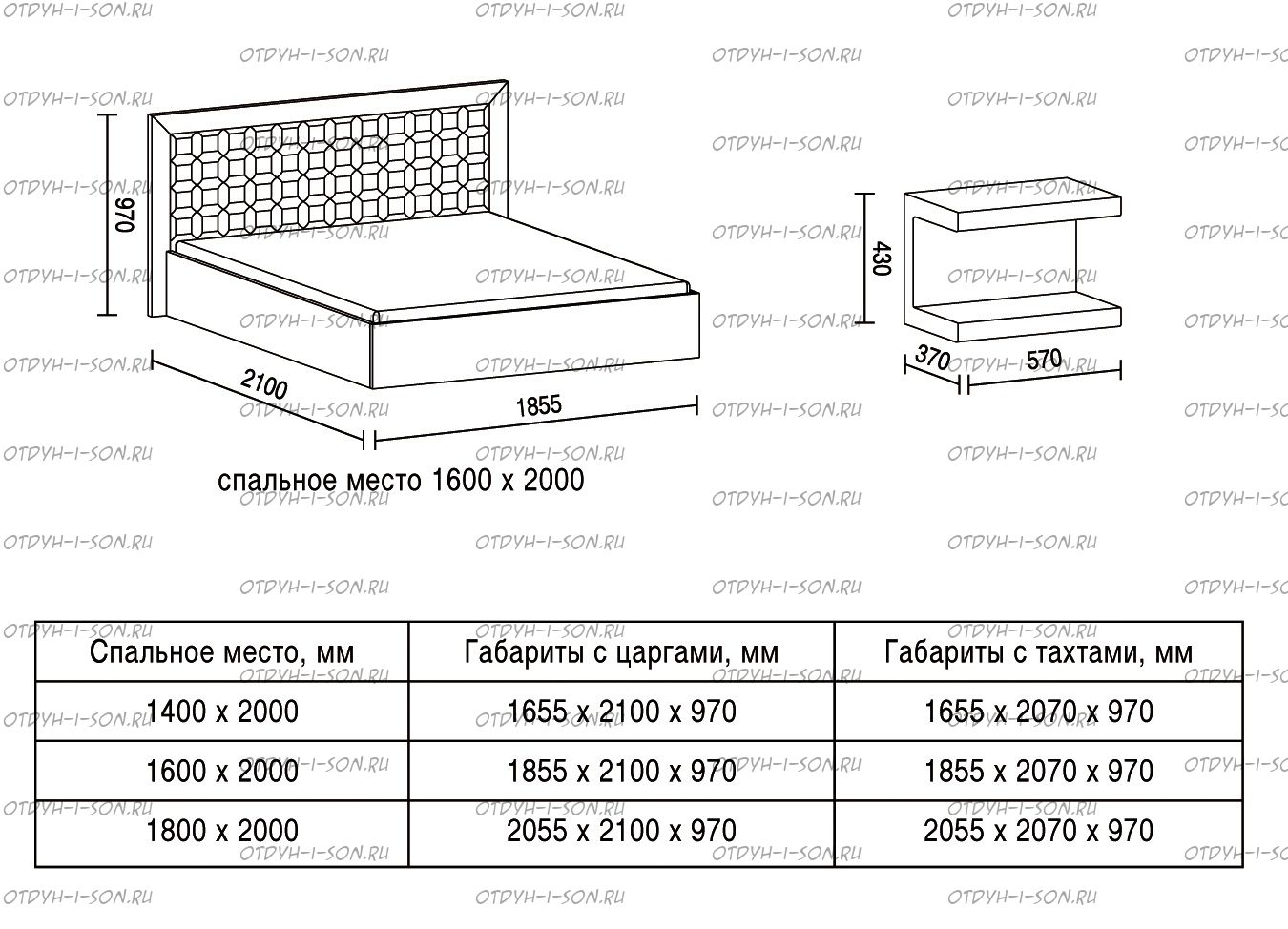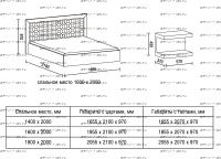 Кровать Caprice-2 Характеристики: Размер спального места: 80Х190, 90Х200, 140х200, 160х200, 180х200 см. Внешние габариты (ШхГхВ): 1055х2000х970, 1155х2100х970, 1655х2100х970, 1855х2100х970, 2055х2100х970 мм. Материал: Складская программа Вес: объем: Цвета категории №1: Mango 002, Mango 305, Mango 793, Mango_3003 Цвета категории №2: Честер 04, Честер Celine 01, Честер Винтаж 01, Честер Винтаж 08 Цвета категории №3: Ламельное основание без подъемного механизма - цельное, сварное Ламельное основание встраиваемое в бельевой ящик с подъемным механизмом может быть как разборное так и цельное, сварное