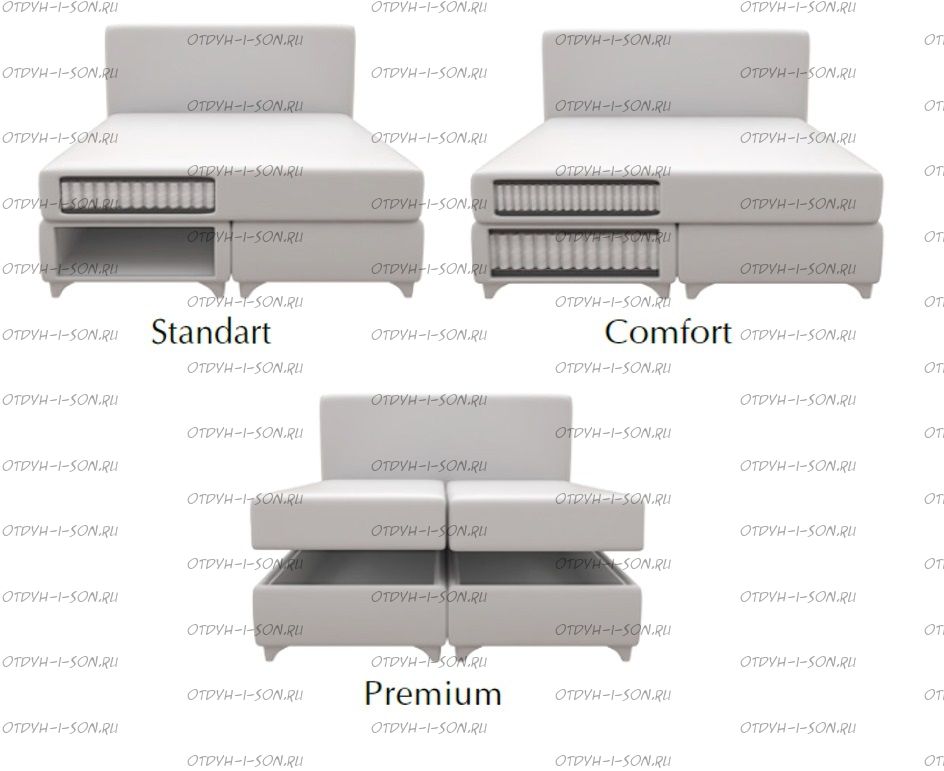 | Внимание | Кровати Perrino 3.0 могут быть выполнены в нескольких вариантах изголовья: Стандарт, Комфорт, Гранд, Люкс, также можно за доплату к декору кровати добавить: пуговицы, стразы или жемчуг! |
