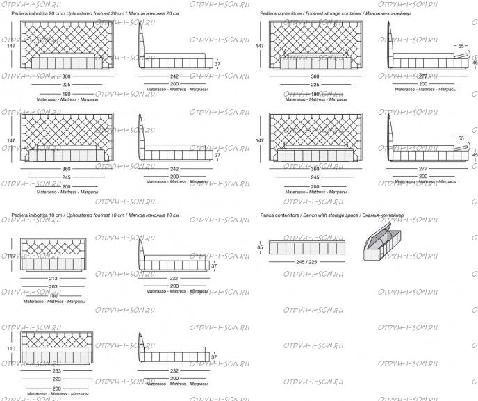 Кровать Letto GM 52 Характеристики: Внешние габариты 160х200 (ШхГхВ): 2050/3600х2420/2770х370/1470 мм.,на заказ, по любым эскизам или фотографиям Размер спального места: 120х190 см, 120х200 см, 140х190 см, 140х200 см, 150х190 см, 150х200 см, 160х190 см, 160х200 см, 180х190 см, 180х200 см и любые другие по Вашим эскизам или фотографиям Материал: Цвета и виды обивки: любые варианты цветов и видов тканей, кожи и экокожи по желанию заказчика, более 200 вариантов расцветок и тканей Данная мягкая мебель может быть изготовлена с любыми видами стяжки, а так же с каретной стяжкой ручной работы, на заказ, по любым эскизам или фотографиям.
