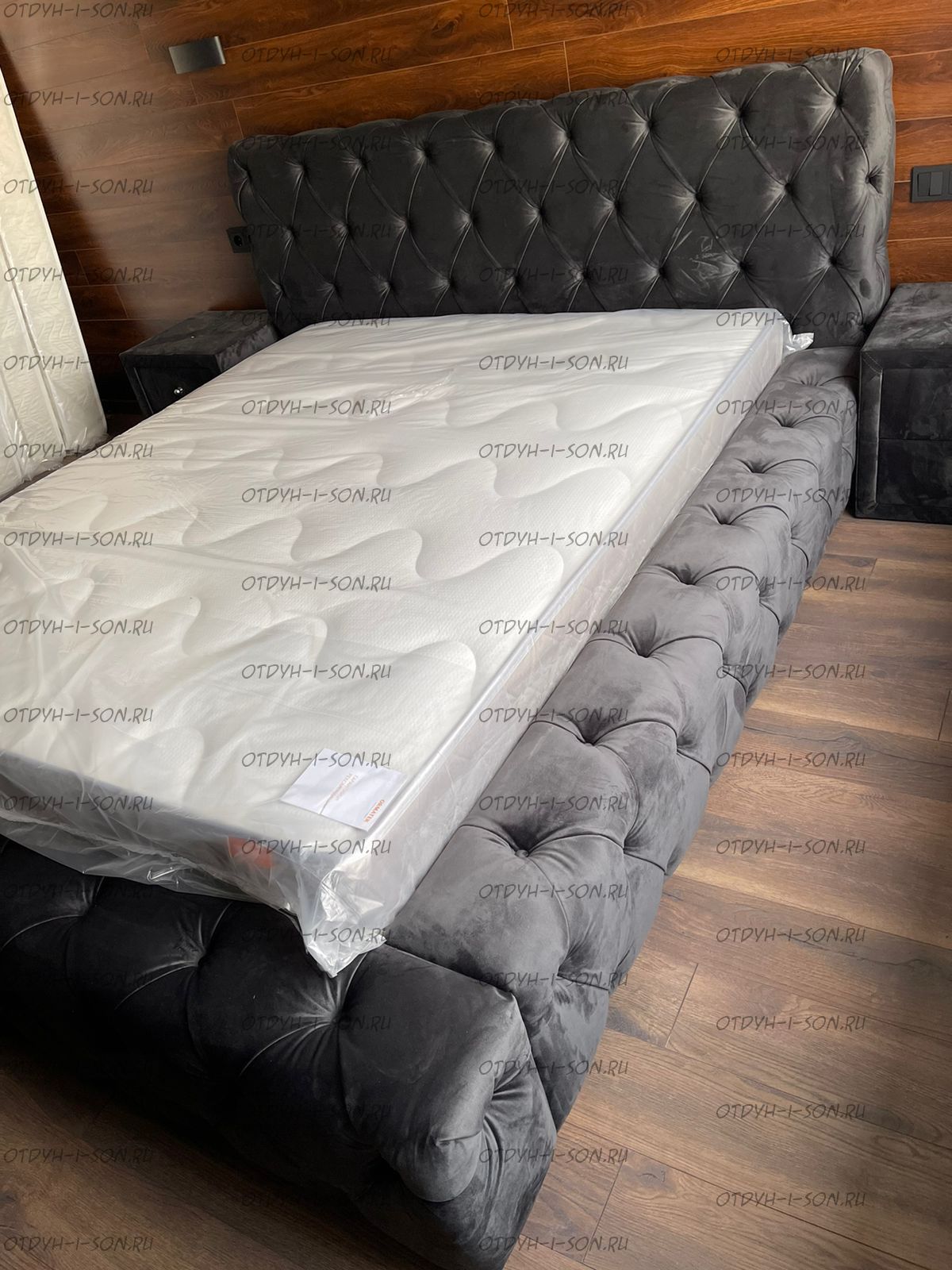 Кровать Катарина б/о Характеристики: Размер спального места: 140х200, 160х200, 180х200, 200х200 см., на заказ, по любым эскизам или фотографиям Внешние габариты 160х200 (ШхГхВ): 205х245х90 см. Любые размеры на заказ, по любым эскизам или фотографиям Материалы: дерево, обивка экокожа или велюр Цвета и виды обивки: любые варианты цветов и видов тканей, кожи и экокожи по желанию заказчика, более 200 вариантов расцветок и тканей Данная мягкая мебель может быть изготовлена с любыми видами стяжки, а так же с каретной стяжкой ручной работы, на заказ, по любым эскизам или фотографиям.