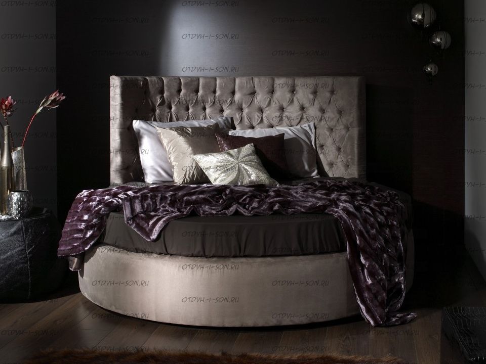 Кровать круглая Letto Rotondo GM 1044 Характеристики: Размер спального места, диаметр: 180 см, 190 см, 200 см, 210 см, 220 см и любые другие по Вашим эскизам или фотографиям Материал: Цвет: разные варианты цветов обивки по желанию заказчика Данная мягкая мебель может быть изготовлена с любыми видами стяжки, а так же с каретной стяжкой ручной работы, на заказ, по любым эскизам или фотографиям.