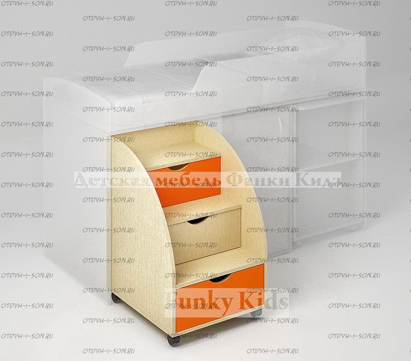 Лестница-комод малая Фанки Кидз 13/25 ФМ Характеристики: Внешние габариты: 720х530х730 Материал: ЛДСП 16 мм (Австрия, Egger). Цвет корпуса: Ольха, Венге, Орех, Дуб кремона Цвет фасада: Розовый, Оранжевый, Крем ваниль, Салатовый, Дуб кремона, Голубой, Венге, Ольха, Орех