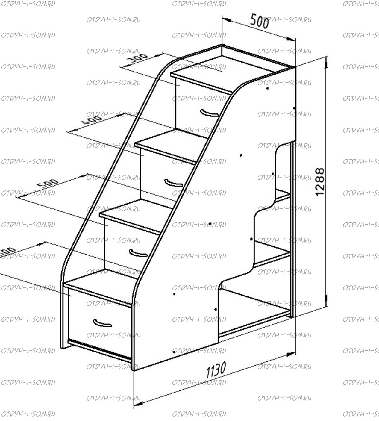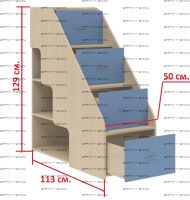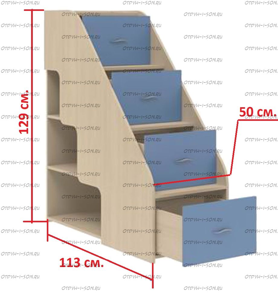 Лестница-тумба Дельта-23/2 Характеристики: Внешние габариты (ШхГхВ): 50х113х129 см. Вес: 88 кг Объем: 0,18 м3 Цвета корпуса: дуб молочный, дуб сонома, венге, орех Цвета фасадов: ольха, оранжевый, орех, дуб молочный, голубой, салатовый, крем ваниль, розовый, салатовый, венге, зеленый текстиль, желтый