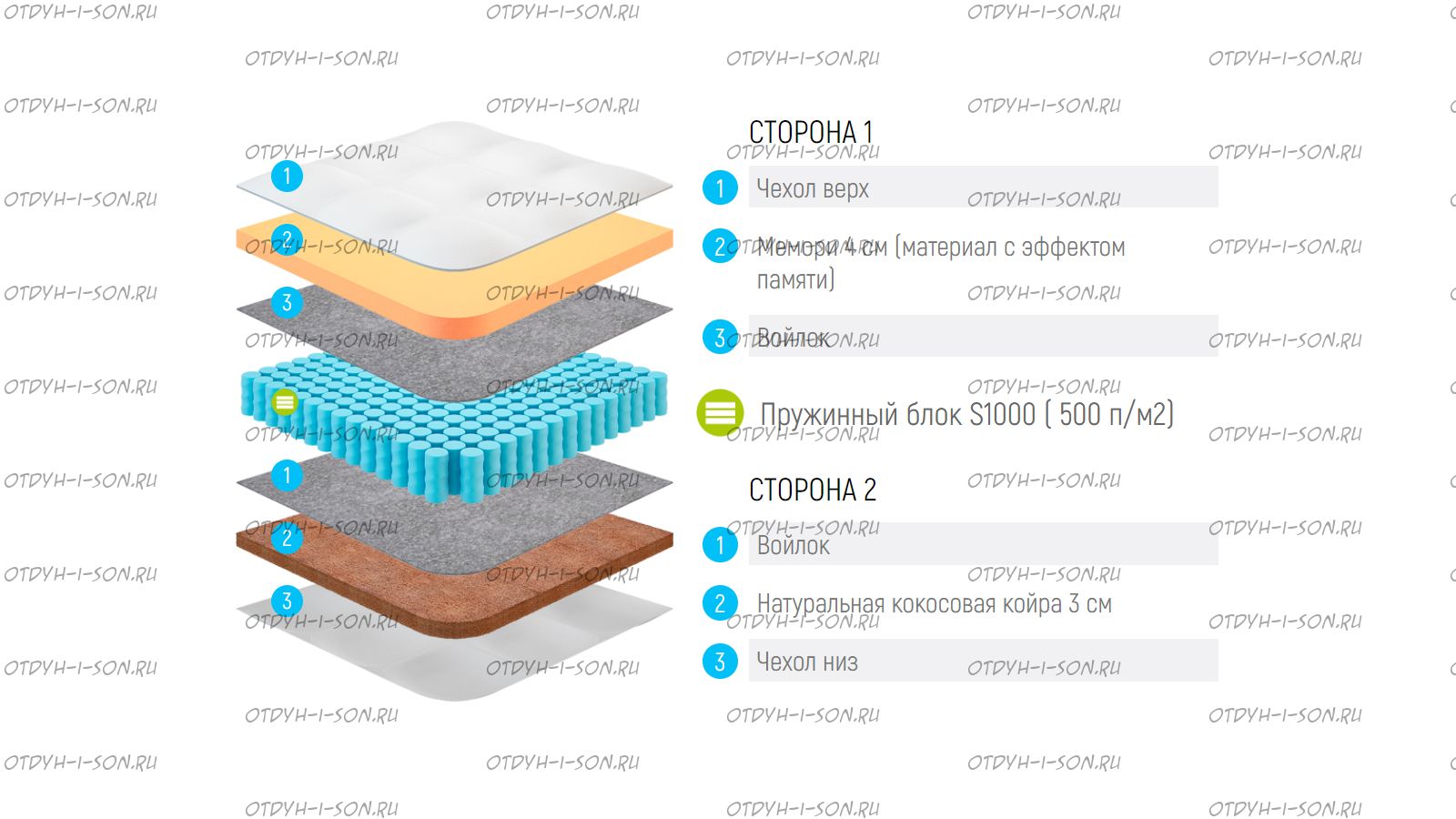 МАТРАС LONAX MEMORY COCOS s1000 ВЫСОТА : 22 СМ КОЛ-ВО ПРУЖИН НА М²: 510 ШТ ЖЕСТКОСТЬ (СТОРОНА 1): МЯГКАЯ ЖЕСТКОСТЬ (СТОРОНА 2): СРЕДНЯЯ МАКСИМАЛЬНАЯ НАГРУЗКА : 120 КГ ТКАНЬ ЧЕХЛА (ПО УМОЛЧАНИЮ): ДВОЙНОЙ ХЛОПКО-ВИСКОЗНЫЙ ЖАККАРД (300 Г/М2) ЛЮКС ГАРАНТИЯ: 36 МЕСЯЦЕВ ОСНОВА: ПРУЖИННЫЙ БЛОК S1000 ( 500 П/М2) СТРАНА ПРОИЗВОДИТЕЛЬ: РОССИЯ ТИП: ПРУЖИННЫЙ ЖЕСТКОСТЬ: РАЗНОСТОРОНЯЯ