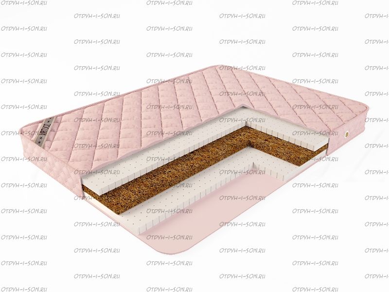 Состав матраса по слоям: Хлопковый жаккард (85% хлопка, 15% вискозы), простеганный на холлофайбере Латексная плита 30 мм. Кокосовая плита 30 мм. Латексная плита 30 мм. Хлопковый жаккард (85% хлопка, 15% вискозы), простеганный на холлофайбере