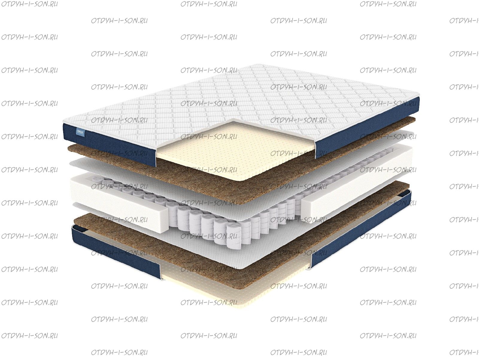 В качестве материала жёсткости использована койра кокоса – наполнитель природного происхождения. Он состоит из плотно спрессованных волокон кокоса, которые залиты латексом. Данный материал гипоаллергенен и гигиеничен, но в первую очередь его ценят за великолепную ортопедическую поддержку спины.