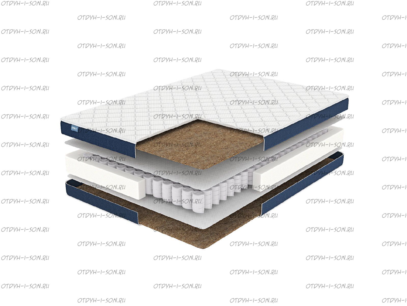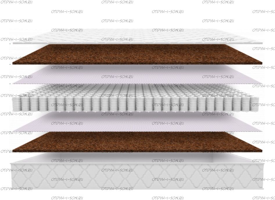 Матрас Димакс Практик Хард 500 17 см. Чехол Жаккард Кокосовая койра 1 см Спанбонд Независимый блок пружин EVS 500 (до 256 шт/м2) Спанбонд Кокосовая койра 1 см Чехол Жаккард