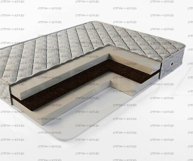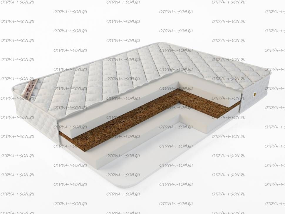 Матрас Лайт кокос Virtuoz Состав матраса по слоям: Чехол: Хлопковый жаккард, простеганный на холлофайбере Натуралфоам 90 мм. Кокосовая койра латексированная 30м. Натуралфоам 90 мм. Чехол: Хлопковый жаккард, простеганный на холлофайбере
