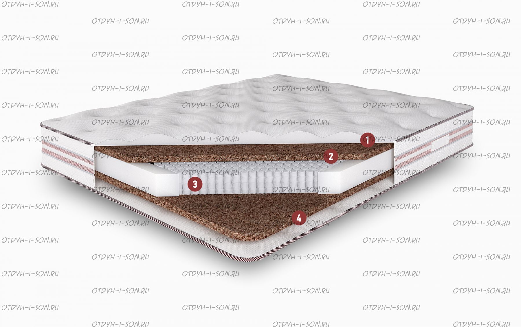 Матрас Мульти-Класс Состав по слоям: Хлопковый чехол, обработанный ионами серебра Кокосовая койра - 3 см. Независимые пружины (Мультипакет) S1000 Кокосовая койра - 3 см. Хлопковый чехол, обработанный ионами серебра Высота: 23 см. Жёсткость: высокая Тип пружин: Независимые пружины "Мультипакет" Нагрузка: до 150 кг. Чехол: натуральный, содержащий большой процент хлопка, обработанный ионами серебра