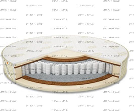 Матрас круглый First (TFK), укрепляющий короб ППУ по периметру Высота: 21 см Жесткость: средняя Состав матраса слоям: Съемный чехол «white plaid» Внутренний чехол Пенополиуретан h - 2 см. Латексированный кокос h - 1 см. Кристаллическая изоляция BioCrystal 50гр. SilverSpringPocket 7 zone 580 пр/сп.м h - 14 см. Латексированный кокос h - 1 см. Пенополиуретан h - 2 см. Внутренний чехол Съемный чехол «white plaid»