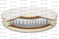 Матрас круглый First + ППУ (TFK) Mr.Mattress Высота: 23 см Жесткость: средняя Состав матраса слоям: Съемный чехол «white plaid» Внутренний чехол Пенополиуретан h - 3 см. Латексированный кокос h - 1 см. Кристаллическая изоляция BioCrystal 50гр. SilverSpringPocket 7 zone 580 пр/сп.м h - 14 см. Латексированный кокос h - 1 см. Пенополиуретан h - 3 см. Внутренний чехол Съемный чехол «white plaid»