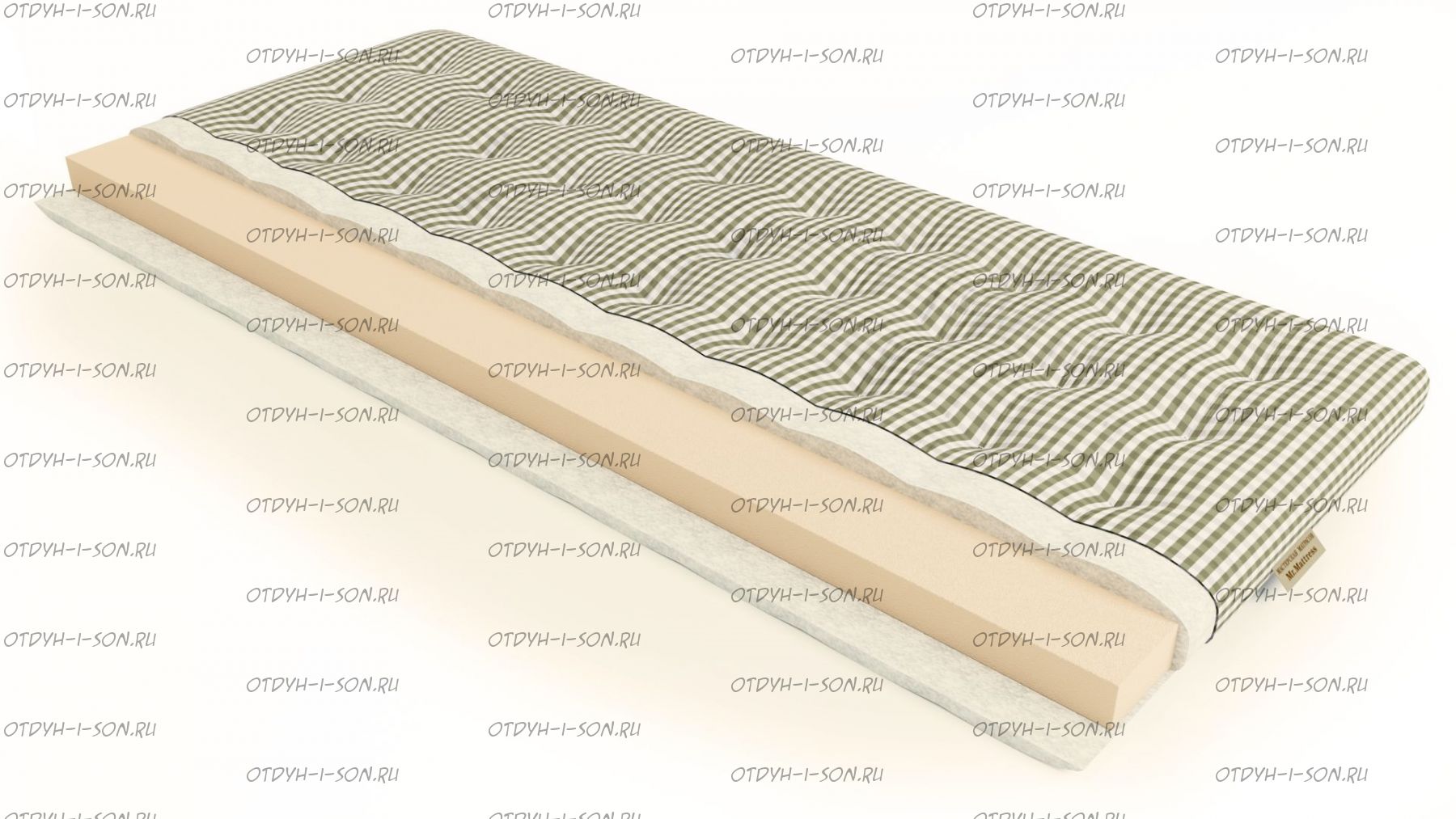 Матрас футон Kishi (Киши) Высота матраса: 10 см. Состав матраса по слоям: Чехол. Фирменная ткань Cotton fiber, 2см. Пенополиуретан, 6 см. Cotton fiber, 2см. Чехол. Фирменная ткань Максимальный вес на 1 спальное место,кг: 100