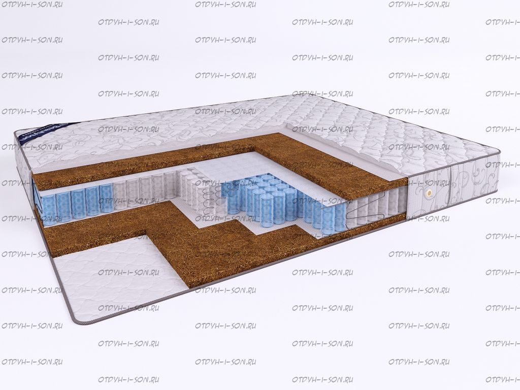 Матрас бесклеевой Beautyson Hit Hard TFK+, матрас изготавливается без использования клея. Состав матраса по слоям: Чехол. Двойной жаккард стеганный на синтепоне и ППУ Кокосовая койра латексированная (3 см) Спанбонд Блок независимых пружин S 600 Pocket 5 zone (300 шт./кв. м) Спанбонд Кокосовая койра латексированная (3 см) Чехол. Двойной жаккард стеганный на синтепоне и ППУ Характеристики: Высота 21 см. Жесткость: высокая Рекомендуемая максимальная масса: до 140 кг.