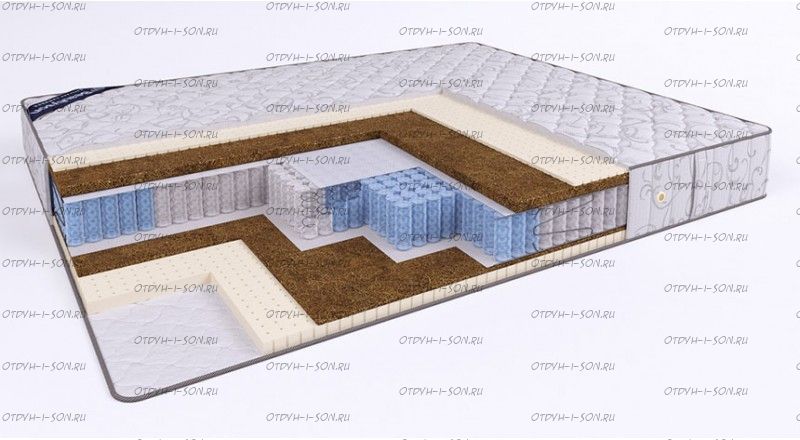 Матрас бесклеевой Beautyson Hit Optima S1200 изготавливается без использования клея. Состав матраса по слоям: Чехол на основе хлопкового жаккарда с объёмной стёжкой на синтепоне 250 г/м2 Кокосовое волокно (3 см) Натуральный латекс (1 см) Спанбонд (изоляционный слой) Пружинный блок "Мультипакет 5 зон" (600 пр./м2) Спанбонд (изоляционный слой) Кокосовое волокно (1 см) Натуральный латекс (3 см) Вертикальные пружины для усиления периметра матраса Чехол на основе хлопкового жаккарда с объёмной стёжкой на синтепоне 250 г/м2 Характеристики: Высота 23 см. Жесткость: ниже средней/выше средней Рекомендуемая максимальная масса: до 120 кг.