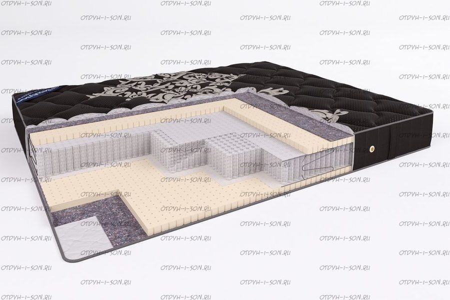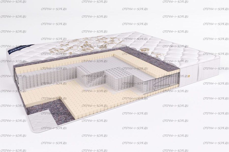 Матрас бесклеевой Beautyson Latex S2400 изготавливается без использования клея. Состав матраса по слоям: Чехол – Хлопковый трикотаж Хлопчатобумажное полотно 0,5 см Натуральный латекс 3 см Независимый пружинный блок (1200 шт./м²) Натуральный латекс 3 см Хлопчатобумажное полотно 0,5 см Чехол – Хлопковый трикотаж Характеристики: Высота матраса: 23 см. Жесткость: средняя Рекомендуемая максимальная масса: до 130 кг.
