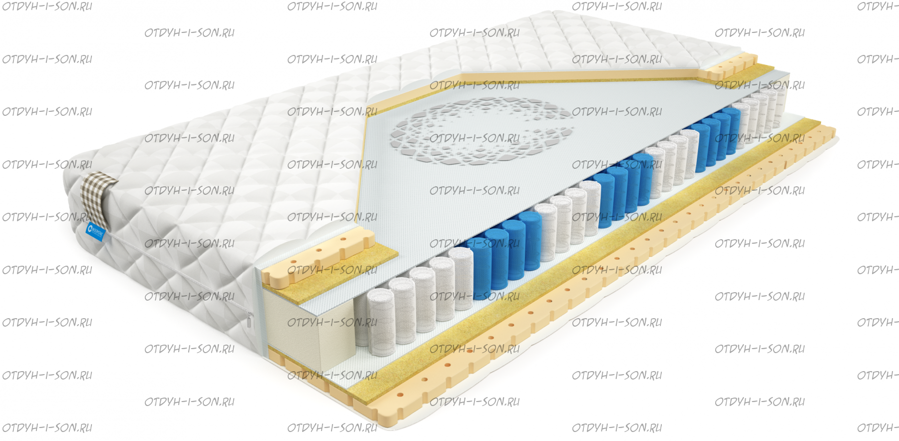 Матрас Cactus XL + подушка Характеристики: Высота матраса: 22 см. Жесткость: средняя Максимальная нагрузка на спальное место: 120 кг. блок TFK Состав матраса по слоям: 1: Съемный чехол «white plaid» 2: Натуральный латекс h - 3 см. 3: Латексированный сизаль h - 1 см. 4: Кристаллическая изоляция BioCrystal 50гр. 5: SilverSpringPocket 7 zone 580 пр/сп.м h - 14 см. 6: Изоляционный настил 7: Латексированный сизаль h - 1 см. 8: Натуральный латекс h - 3 см. 9: Укрепляющий короб 10: Внутренний чехол