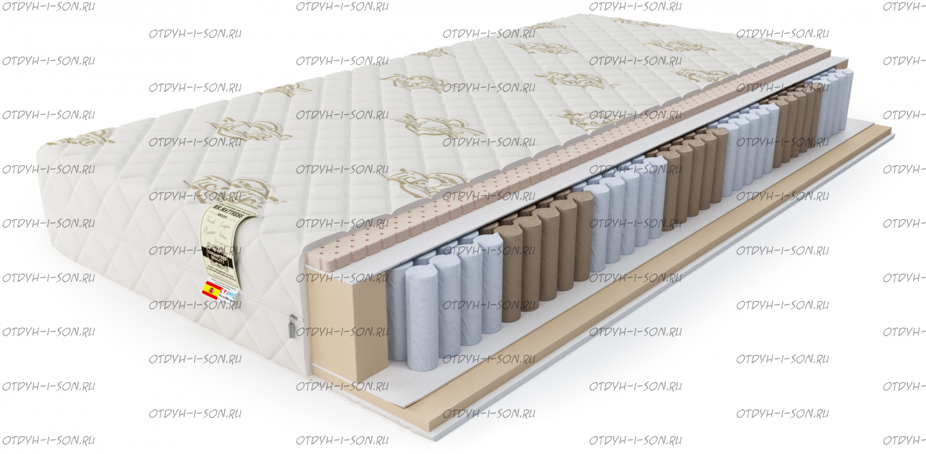Матрас Dynasty SSP 500 (многозональный). Укрепляющий короб из ППУ по периметру. Высота матраса: 22 см. Состав матраса по слоям: Съёмный чехол "Tick Line" Внутренний чехол Пенополиуретан h-2 см Изоляционный настил TaschenFederKern 7 zone 290 шт/м2 Изоляционный настил Натуральный латекс h-2 см Внутренний чехол Съёмный чехол "Tick Line"