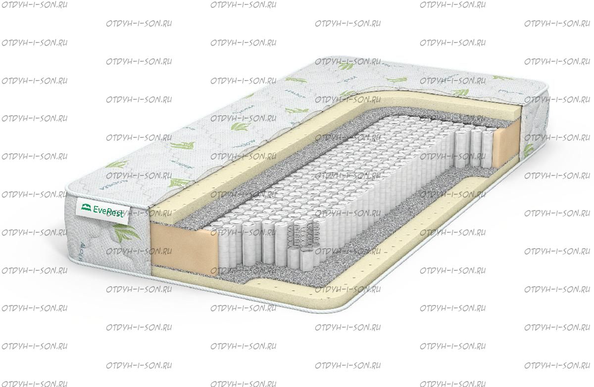 Матрас Everest Софт латекс 30 S1000. В блоке независимых пружин «Мультипокет» каждая пружинка имеет небольшой диаметр и упакована в индивидуальный чехол. Благодаря такой конструкции матрас прогибается локально, не создавая эффекта гамака. Модель отличается прекрасными ортопедическими качествами. Высокий показатель анатомичности создается с помощью листов перфорированного латекса. Эластичный материал отличается способностью хорошо вентилироваться и долговечностью. Матрас является нейтральным по отношению к окружающей среде и человеческому телу.