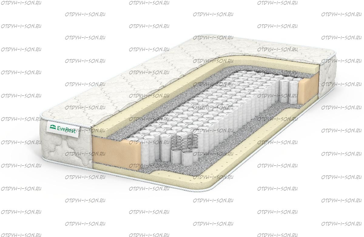 Матрас Everest Софт латекс 30 TFK. Пружинный блок ТФК формирует опору для спины с учетом анатомических изгибов тела. Благодаря ему матрас деформируется локально: пружинки сжимаются и разжимаются независимо друг от друга, не влияя на соседние. Натуральный латекс – прекрасный материал, который отличается способностью хорошо проветриваться и служить долго. Но главное, он естественным образом деформируется под особенности тела, дополняя анатомический и ортопедический эффекты пружин. Матрас помещен в чехол из натурального плотного хлопка.