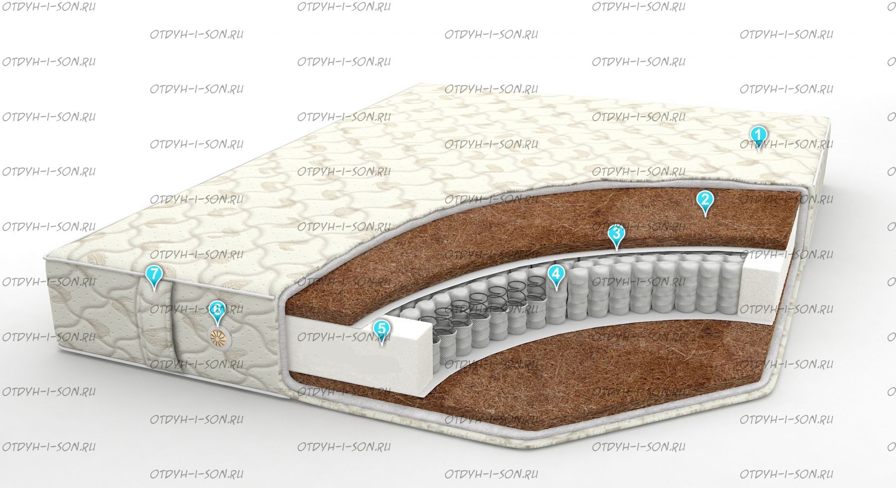 Матрас Ingrid Dream 3 (Ингрид) TFK Высота матраса: 20 см. Состав матраса по слоям: Кокос - 30 мм Спанбонд Блок независимых пружин TFK Спанбонд Кокос - 30 мм
