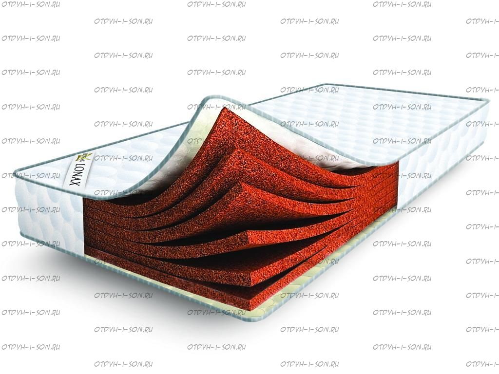 Матрас "Lonax Cocos 18" 19 см. беспружинный Состав матраса по слоям: Чехол: Хлопковый Жаккард + синтепон Кокос латексированный 30мм. Кокос латексированный 30мм. Кокос латексированный 30мм. Кокос латексированный 30мм. Кокос латексированный 30мм. Кокос латексированный 30мм. Чехол: Хлопковый Жаккард + синтепон