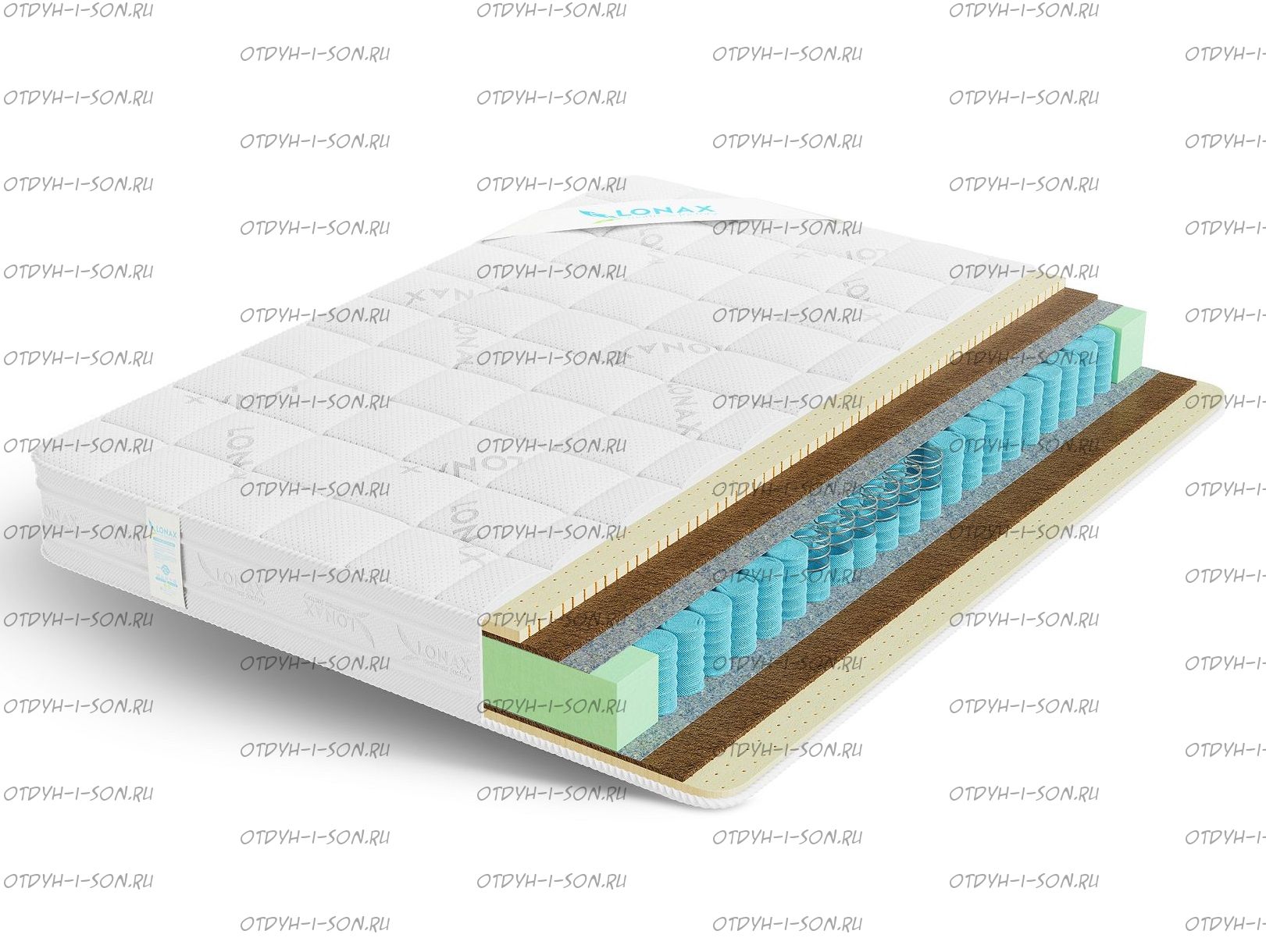 Матрас Lonax Medium Light TFK 20 см. блок TFK Cостав матраса по слоям: Чехол: Хлопковый Жаккард латекс 20мм. Кокос латексированный 10мм. Термовойлок блок TFK Термовойлок Кокос латексированный 10мм. латекс 20мм. Чехол: Хлопковый Жаккард