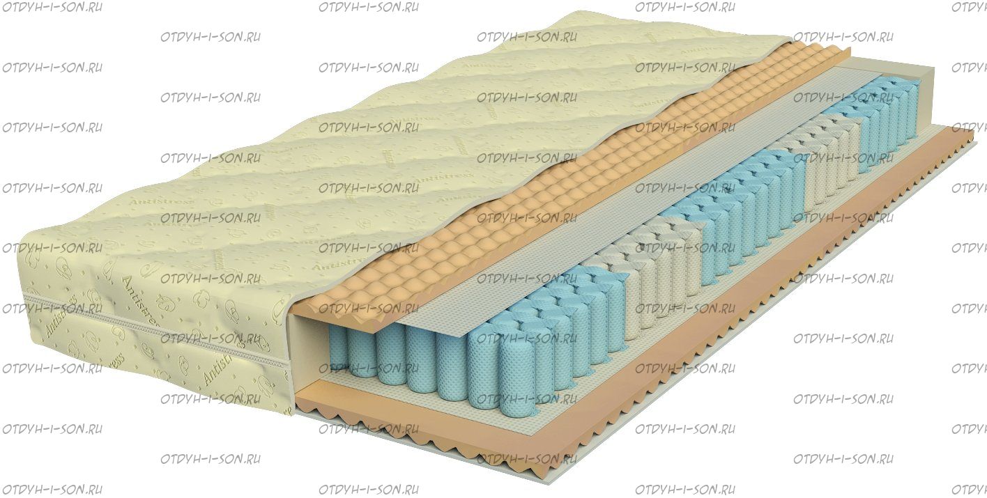 В качестве основы используется инновационный 5-зонный пружинный блок. За счет разной степени упругости пружин обеспечивается качественная адаптация матрас к особенностям строения тела. Усиленную поддержку получают плечевая и поясничная зоны, ноги. Матрас переменной жесткости способен выдерживать значительные нагрузки. Прекрасно подойдет для пар с большой разницей в весе.