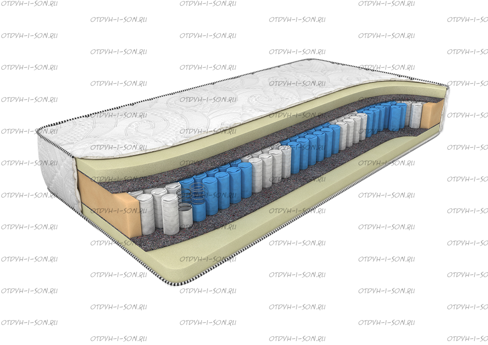 Спальная поверхность укомплектована особенным наполнителем Меморикс с эффектом запоминания формы. Во время сна и отдыха Вам не придется искать наиболее удобное положение, потому что "умный" матрас сам будет подстраиваться к особенностям тела, нежно обволакивая и создавая несравнимое ощущение погружения в невесомость. Достигнуто это благодаря способности материала точно повторять контуры тела, реагируя на его температуру и вес. Обратное сопротивление со стороны материала практически отсутствует. Несомненным преимуществом является и контурная резка поверхности, создающая легкое массажное воздействие.