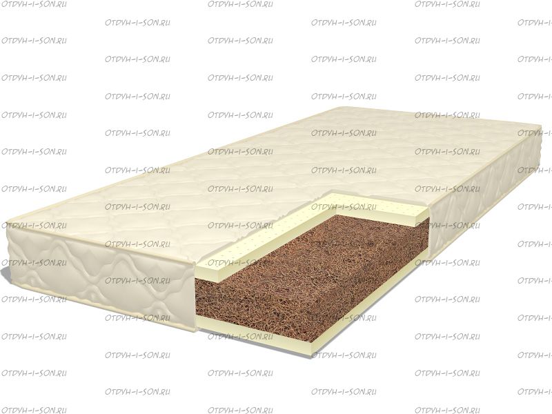 Матрас Orto Soft 16 см беспружинный Состав матраса по слоям: Чехол "ELIT" Латекс 30мм. Кокос 30мм. Кокос 30мм. Кокос 30мм. Латекс 30мм. Чехол "ELIT"