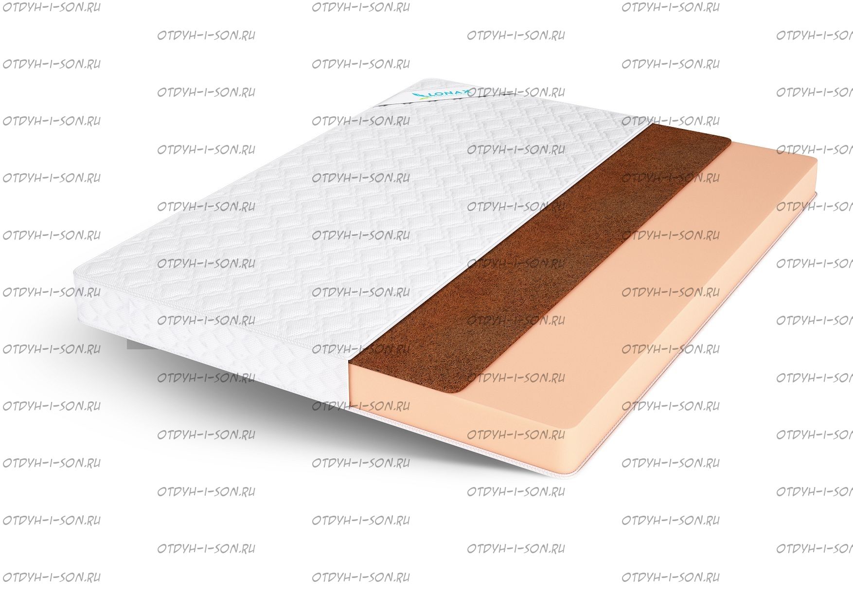 Матрас Roll Cocos Состав матраса по слоям: Чехол: Ткань хлопковый жаккард, простеганный на синтепоне плотностью 100гр/м2 Искусственный латекс (ППУ) 14 см Кокосовай койра латексированная 1 см Чехол: Ткань хлопковый жаккард, простеганный на синтепоне плотностью 100гр/м2 Характеристики: Плотность ППУ 23 Чехол х/б Максимальная нагрузка до 110 кг. Основа матраса: Беспружинный Высота матраса: 15 см. Характеристики: Размер матраса: возможны любые размеры