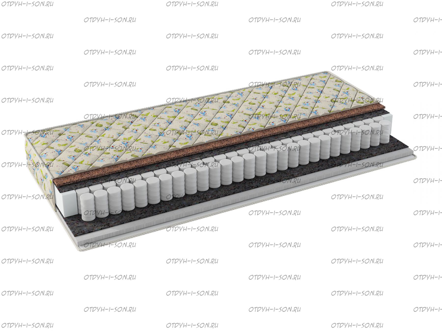 Матрас Velson Baby-1 TFK - отличная модель детского матраса с выбором жесткости сторон. Жесткая сторона матраса это кокосовое волокно - 1 см. Эта сторона имеет жесткость выше среднего и рекомендована в использовании до 3-4 лет пока позвоночник еще формируется. В дальнейшем ее можно использовать в качестве профилактики формирования правильной осанки. Мягкая сторона матраса это холлофайбер 2 см. Это довольно мягкий материал, но в свою очередь он имеет хорошую плотность и позволяет мышцам расслабиться. Основой матраса служит независимый пружинный блок высотой 8 см. Отличная модель сочетающая в себе цену и качество.