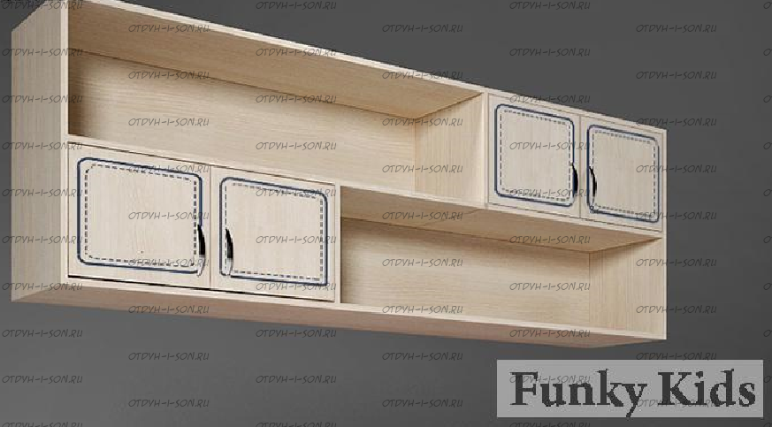 Мост надкроватный Капитан КП-13/12. Интересный по конструктиву моноблок крепится к стене. Приобретается как в комплекте с другой мебелью серии Капитан, например, кроватью и письменным столом или отдельным элементом. В состав конструкции входят полки и шкафчики с дверью.