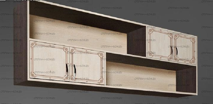 Подвесной мост Гарри Поттер ГП-13/12. Подвесной мост ГП-13/12 серии Гарри Поттер представляет собой широкую вместительную полку, которую необходимо крепить к стене и шкафам. Она имеет сложную и функциональную конструкцию для хранения книг, игрушек, белья и других детских вещей. Приобретается к кровати или к письменному столу. Наполнение: две полки и два шкафчика с дверками.