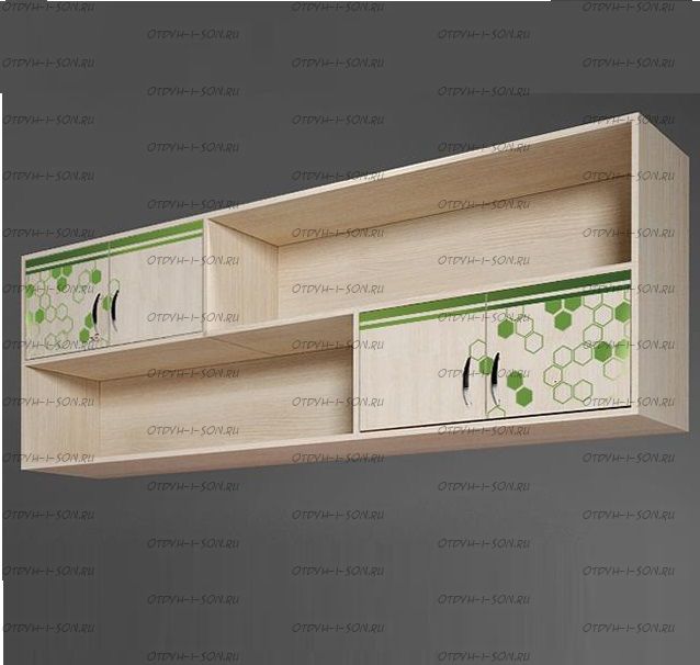 Полка навесная Футбол Фанки Кидз ФУТ-13/12. Мост надкроватный Футбол ФУТ-13/12 - широкий навесной модуль для хранения книг и игрушек. Крепится к стене и между шкафами. Наполнение: полки и закрытые секции (открывание - две двери). Фасад декорирован качественной уф-фотопечатью в зеленом цвете. Приобретается в комплекте готовой комнаты или отдельным элементом.