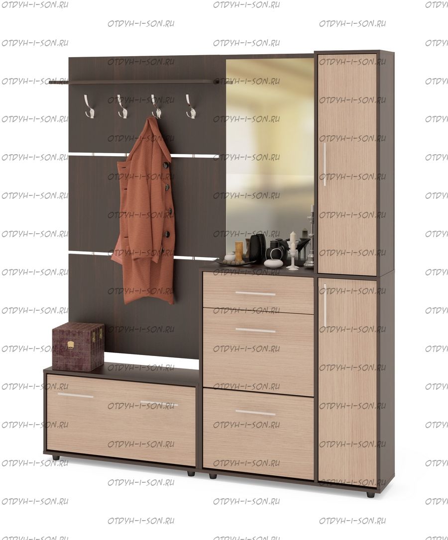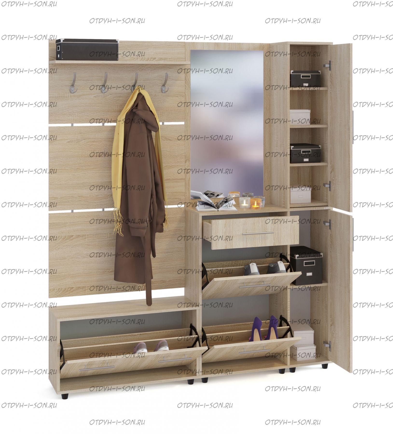 Прихожая Сокол ВШ-3.1+ТП-3+ТП-4+ПЗ-4 Характеристики: Габаритные размеры (ШхГхВ): 1800х290х2090 мм. Материалы: ЛДСП 16 мм. Цвета : Венге, Дуб млечный, Дуб сонома, Орех
