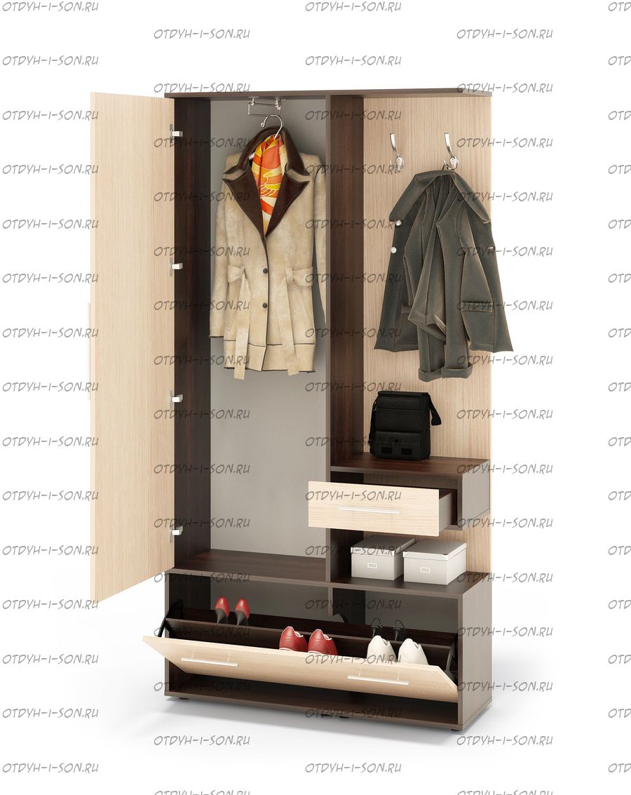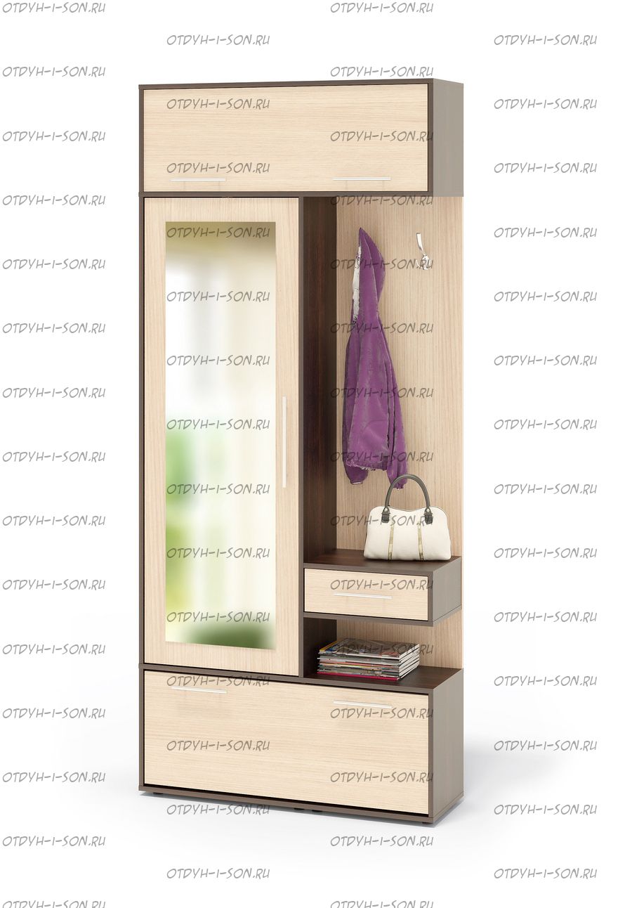 Прихожая Сокол ВШ-6+ШН-6 Характеристики: Габаритные размеры (ШхГхВ): 1050х340х2450 мм. Материалы: ЛДСП 16 мм. Цвета : Венге/Дуб млечный