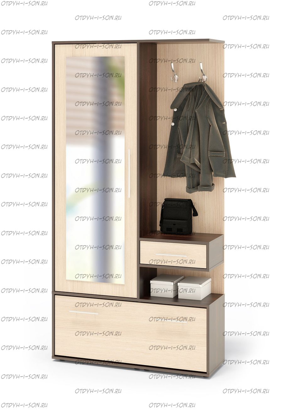 Прихожая Сокол ВШ-6 Характеристики: Габаритные размеры (ШхГхВ): 1050х340х2090 мм. Материалы: ЛДСП 16 мм. Цвета : Венге/Дуб млечный
