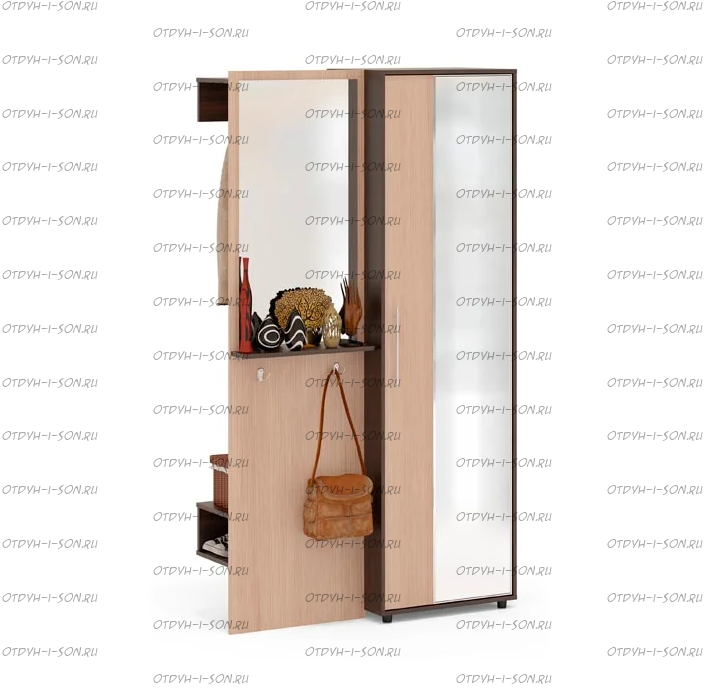 Прихожая Сокол ВШ-8+ШО-2 Характеристики: Габаритные размеры (ШхГхВ): 1200х430х2090 мм. Материалы: ЛДСП 16 мм. Цвета : Венге/Дуб млечный