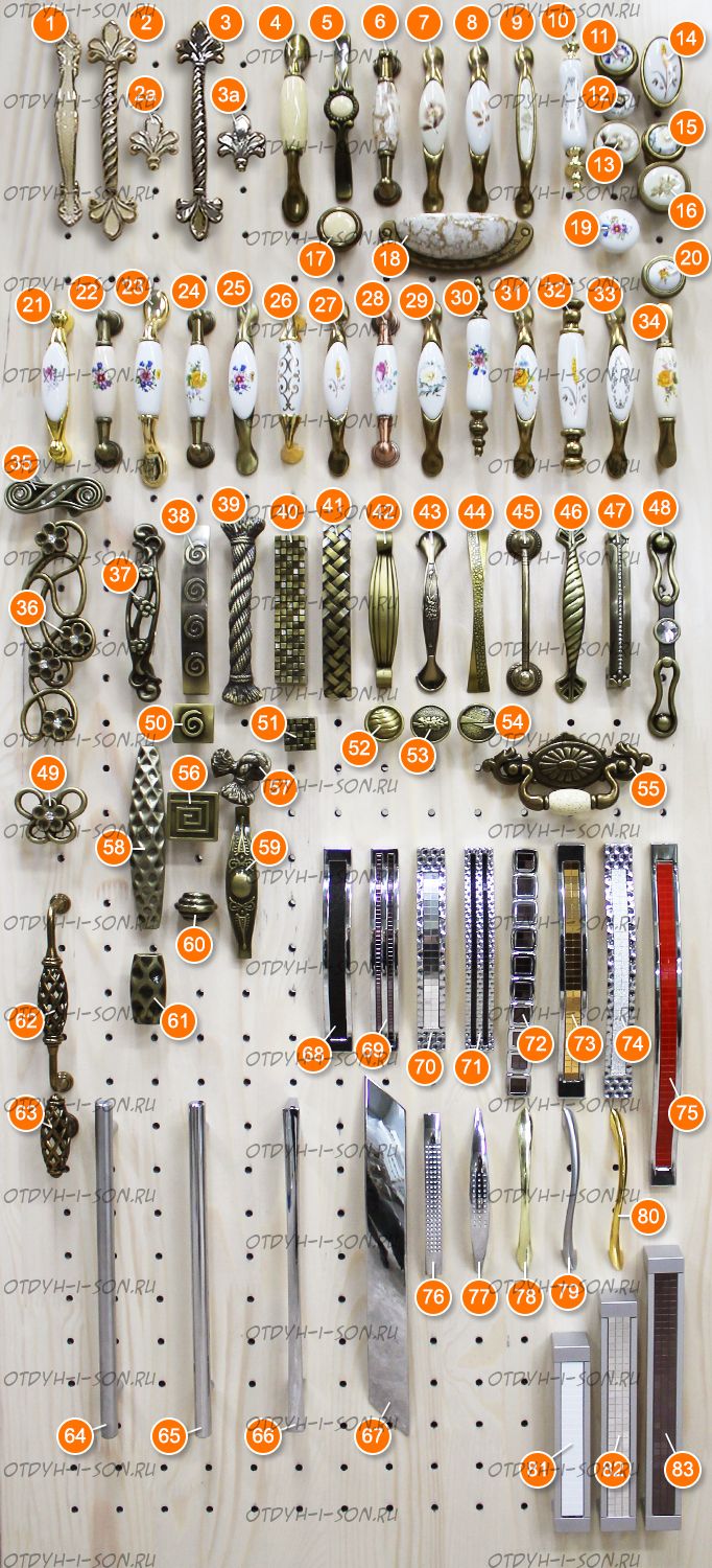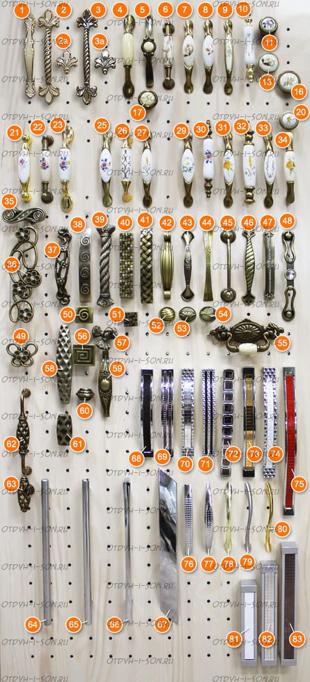 | Внимание | При покупке комода, шкафа, подкроватных ящиков или тумб обязательно выбирайте тип ручек (фурнитуры), которые прилагаются на дополнительном фото |