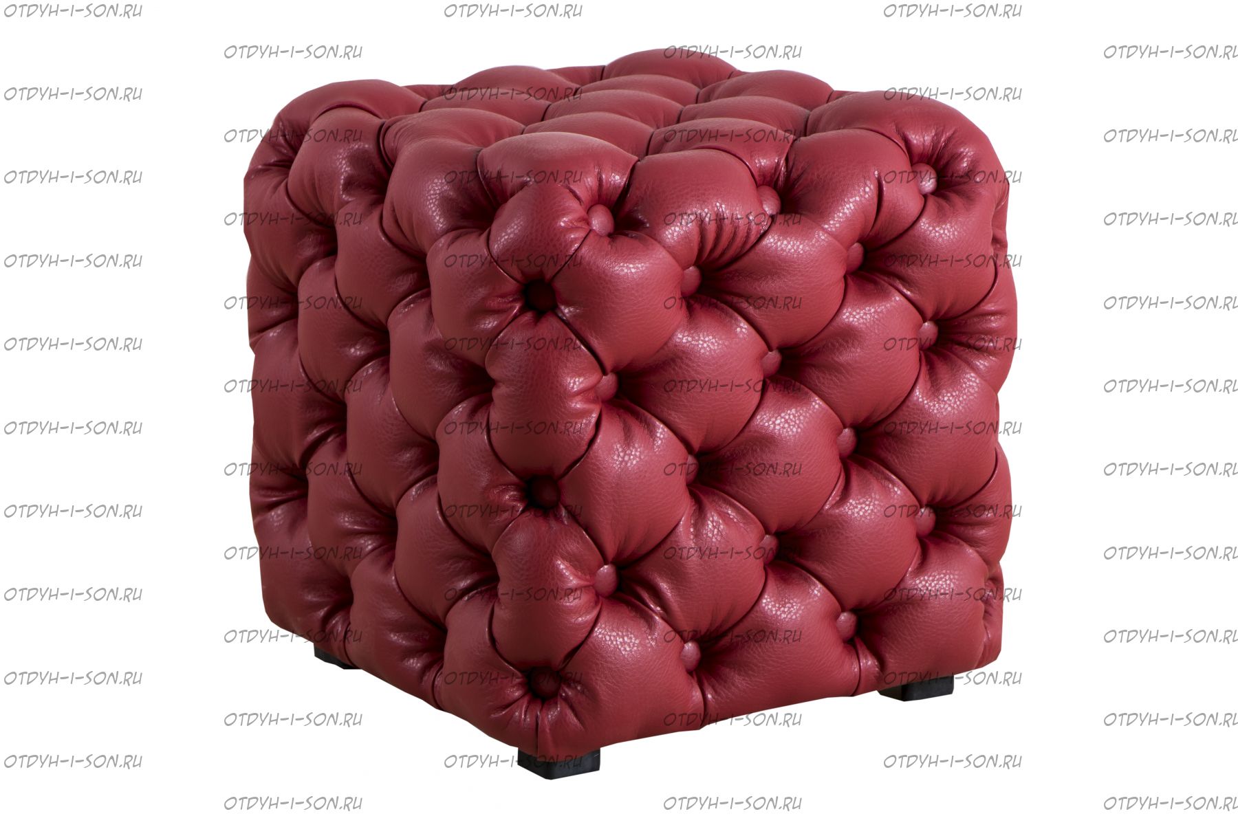 Пуф Денди выполнен в материалах: Ткань основа: Sontex red Декор: каретная стяжка. Внешние габариты (мм): 420 х 420 х 420. Высота сиденья от пола (мм): . Декоративные подушки: Нет. Механизм трансформации: Без механизма. Количество посадочных мест: 1 место. Подлокотники: Нет. Объём: 0,2