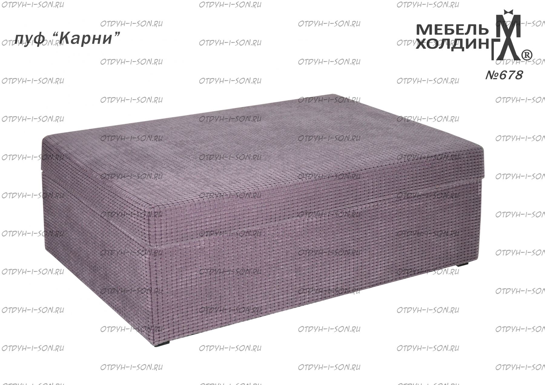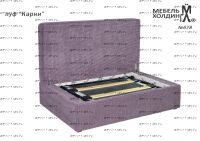 Пуф-трансформер Карни от фабрики МебельХолдинг Характеристики: Размер спального места: 185x75x41 см. Внешние габариты (ШхГхВ): 110x74x45 см. Высота сиденья от пола: 45 см. Механизм трансформации: Раскладушка Наполнение спального места: ППУ Наличие ящиков: Нет
