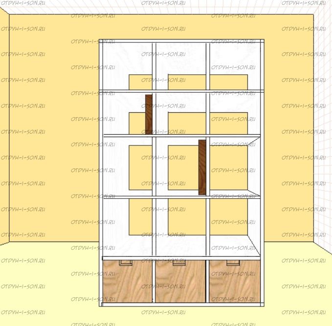 Стеллаж 9 секций Массив 3 любые цвета Характеристики: Внешние габариты (ШхГхВ): 1200х350х1200 мм Материалы: ЛДСП Цвет корпуса: дуб молочный, венге, вишня, орех донской, белое дерево, бодего темный Цвета фасада: розовый, оранжевый, ирис, лайм, голубой, зеленый, бежевый, красный, бодего темный, дуб молочный, венге, вишня, орех донской, белое дерево.