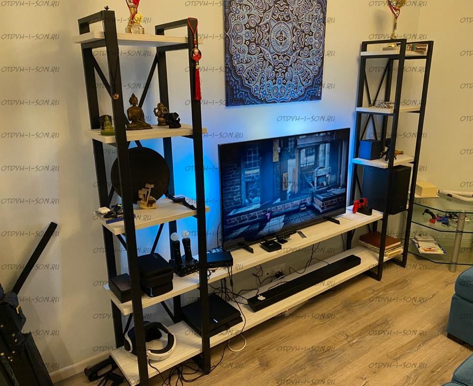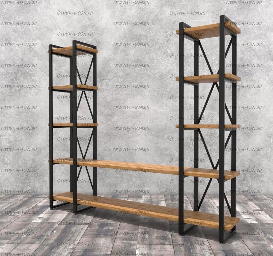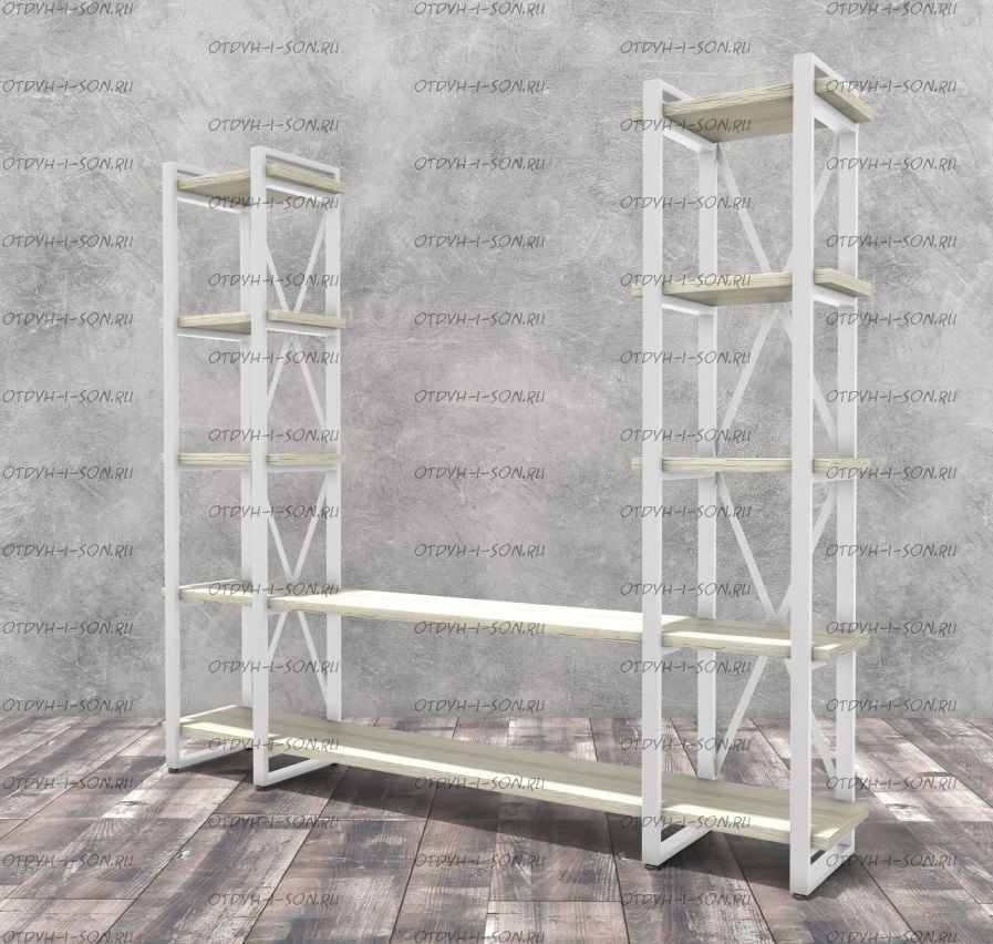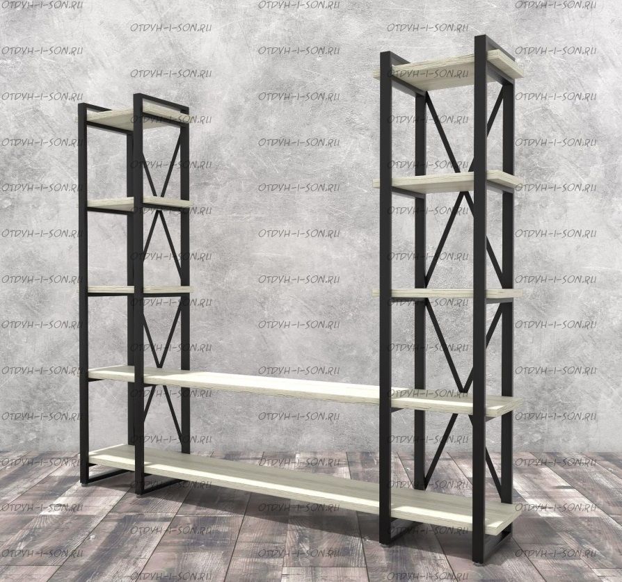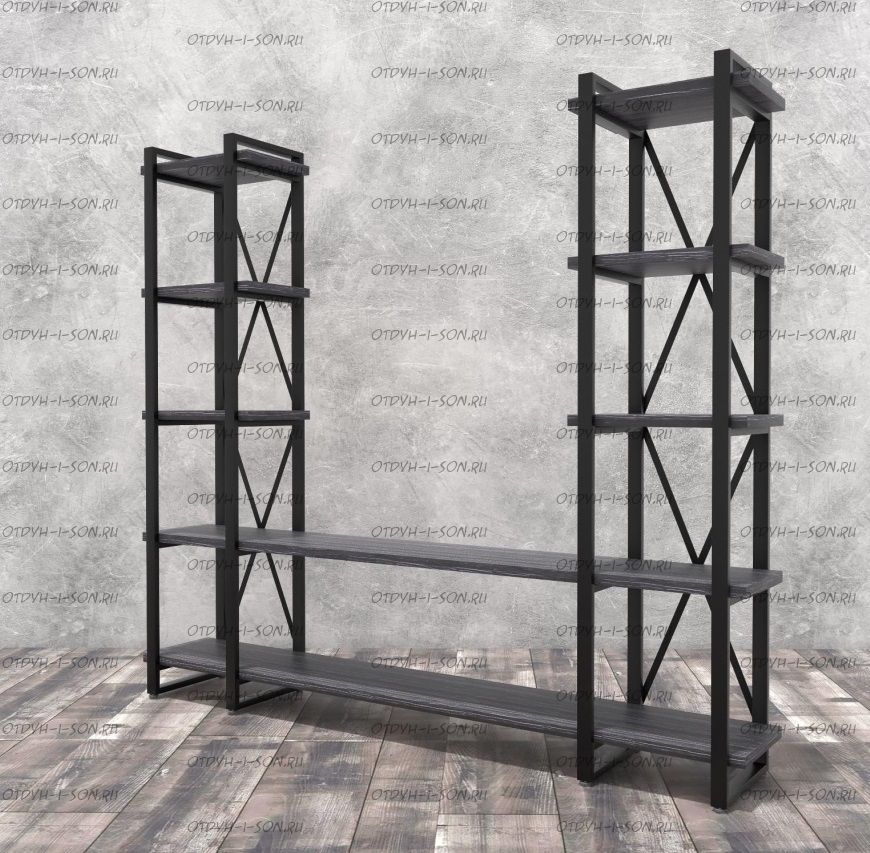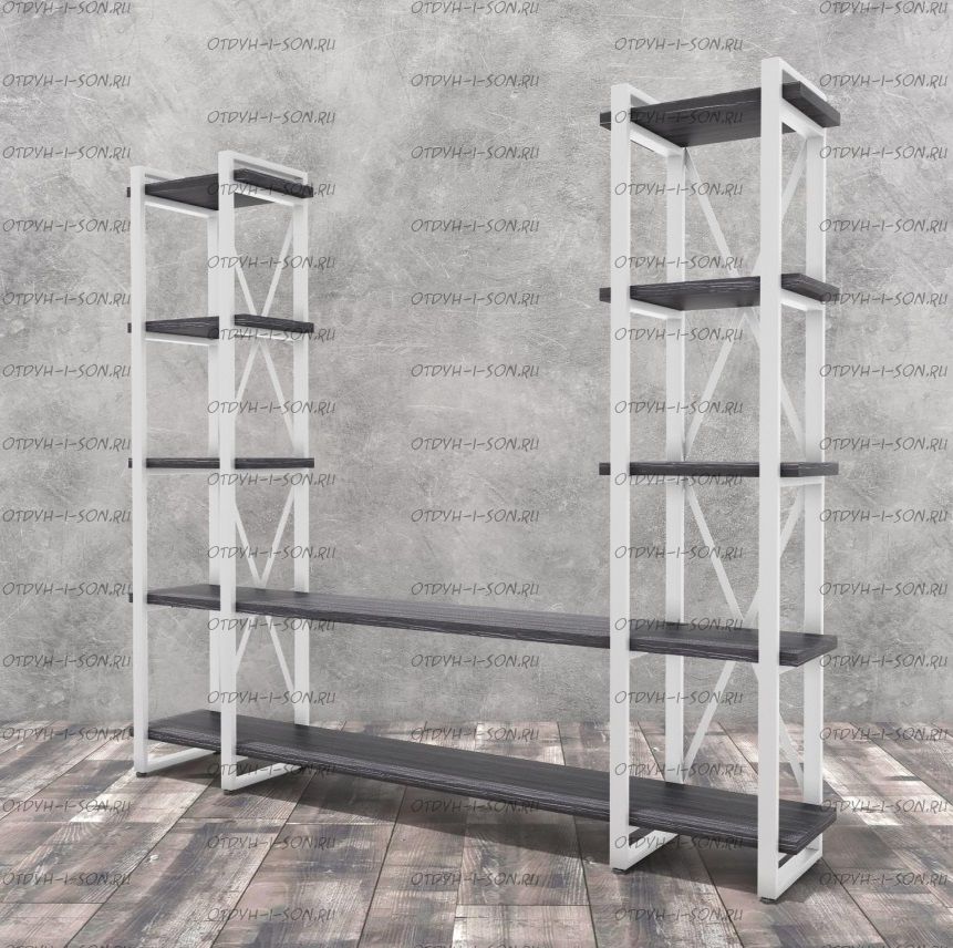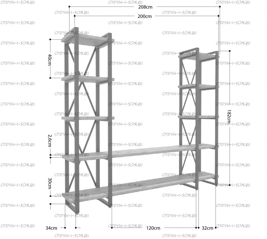 Стеллаж Лофт 200х182-4 Характеристики: Внешние габариты (ШхГхВ): 208 Х 34 Х 182 см. Материалы каркаса: металл Диаметр трубы каркаса: 40 мм Вес: Цвет фасадов: коричневый, черный, серый, слоновая кость