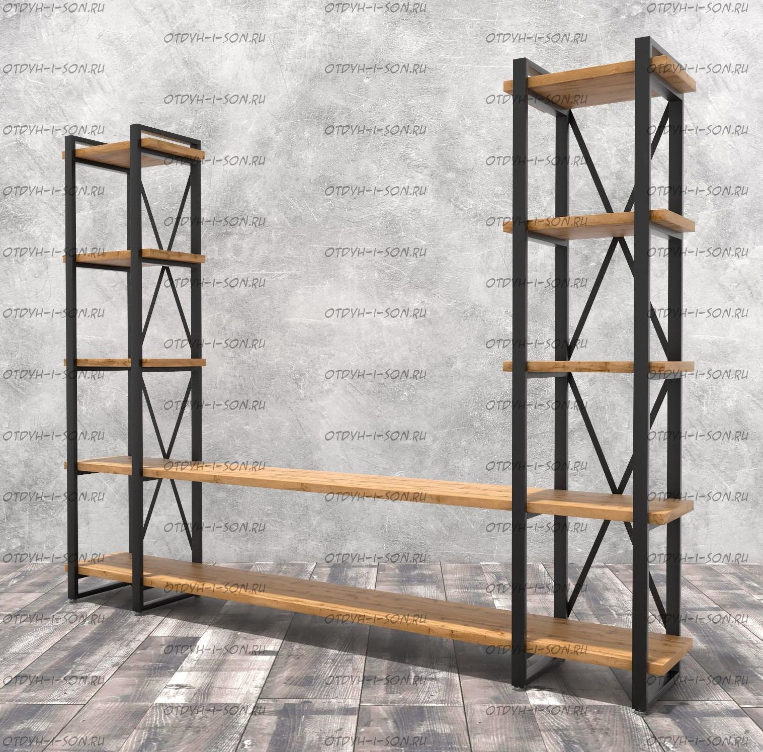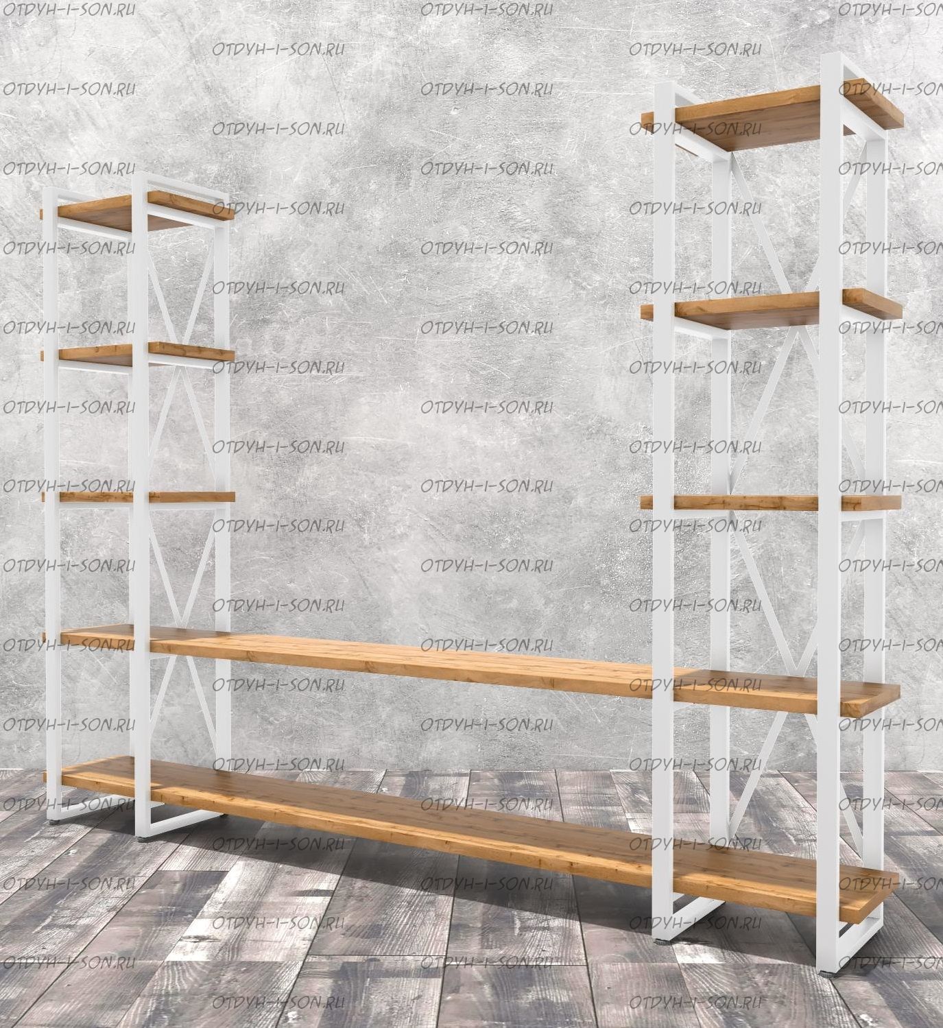Стеллаж Лофт 240х182-4 v2 Оригинальный стеллаж в стиле лофт. Для истинных ценителей оригинальных интерьеров. Характеристики: Внешние габариты (ШхГхВ): 248 х 34 х 182 см.