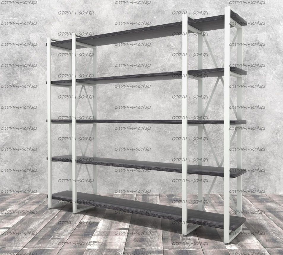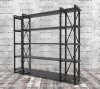 Стеллаж Лофт 200х182-4 v3 Характеристики: Внешние габариты (ШхГхВ): 208 Х 34 Х 182 см. Материалы каркаса: металл Диаметр трубы каркаса: 40 мм Вес: Цвет фасадов: коричневый, черный, серый, слоновая кость