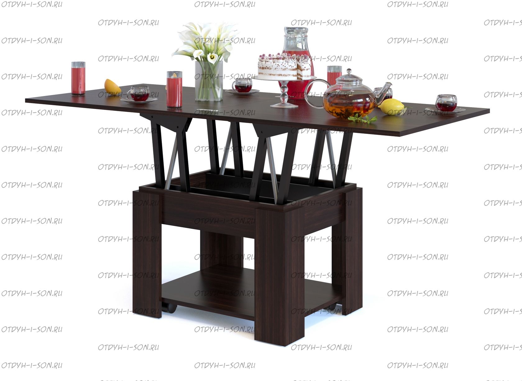 Стол журнальный ССЖ-2 Характеристики: Габаритные размеры (ШхГхВ): 800/160х750х450/720 мм. Материалы: ЛДСП 16 мм. Цвета : Венге