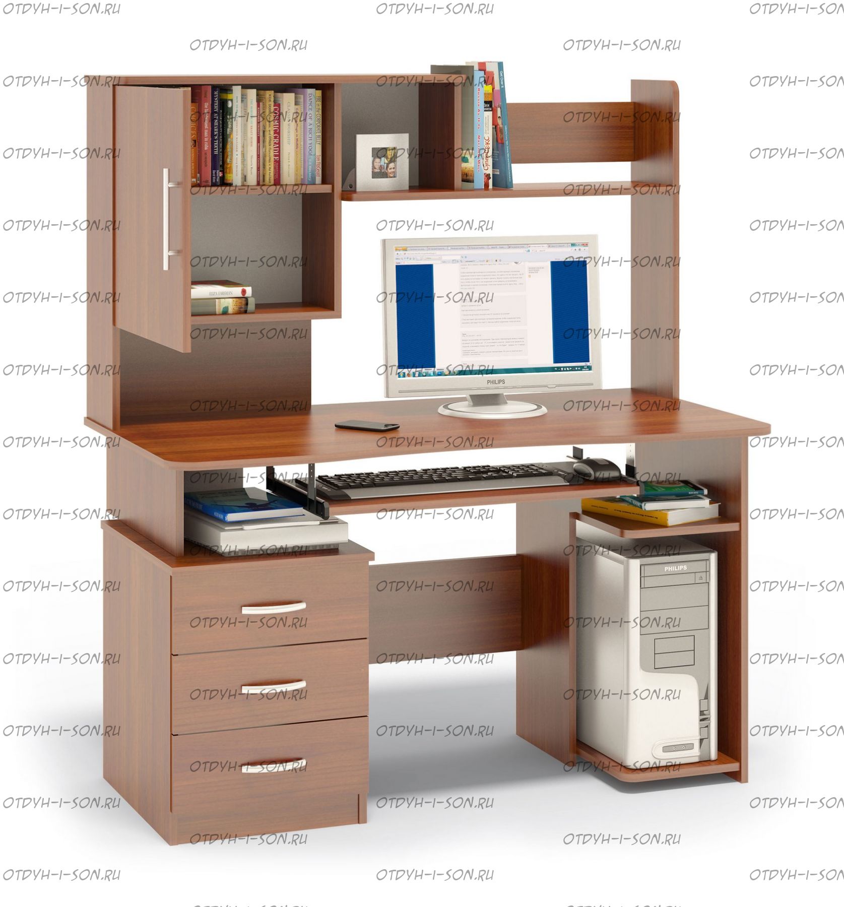 Стол компьютерный Сокол КСТ-08 (КСТ-08.1)+КН-34 Характеристики: Габаритные размеры (ШхГхВ): 1300х600х1460 мм. Материалы: ЛДСП 16 мм. Цвета : Венге, Орех, Ноче