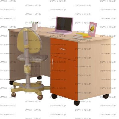 Стол письменный выкатной Дюймовочка-5/4 Характеристики: Внешние габариты (ШхГхВ): 1300х600х770 мм. Материалы: ЛДСП Гарантия: 18 мес. Цвета корпуса: дуб молочный, дуб сонома, венге, орех Цвета фасадов: ольха, оранжевый, орех, дуб молочный, голубой, салатовый, крем ваниль, розовый, салатовый, венге, зеленый текстиль, желтый