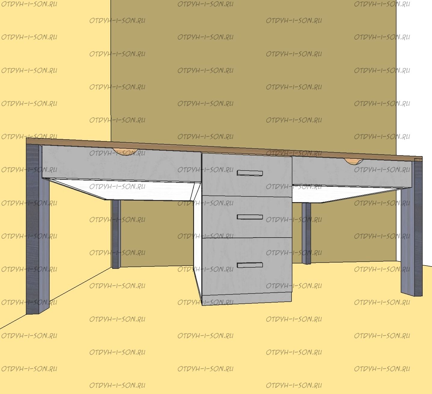 Стол письменный для двоих детей Лев-2 Характеристики: Внешние габариты: любые Материалы: Массив сосны Форма столешницы: Прямоугольный Высота стола: 75 см. Цвет: любые Изготовление в белом цвете или слоновая кость плюс 2500 руб.